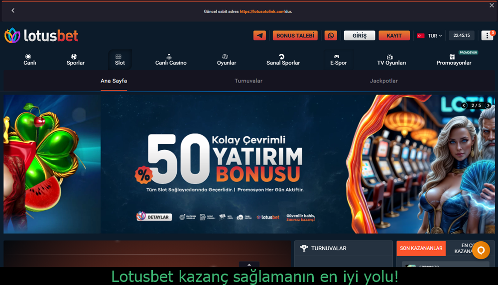 Lotusbet, bahis sitesinde sağlam bahis oyunları oynayarak çok kolay bir şekilde bahis oyunlarında para kazancı elde etme fırsatına sahip olabilmektesiniz. Kaliteli bahis deneyimi yaşama şansına sahip olacağınız, lotusbet bahis sitesinde bir birinden güzel bahis oyunları fırsatları ile çok daha sağlam para kazançları elde etme imkanınız bulunmaktadır. Kazandıran bahis sitesi olarak dikkat çeken ve sizler için en iyi bahis seçeneği olarak dikkat çeken, bahis sitesi lotusbet ile sizlerde hemen kısa yoldan para kazanma fırsatına sahip olabilirsiniz.